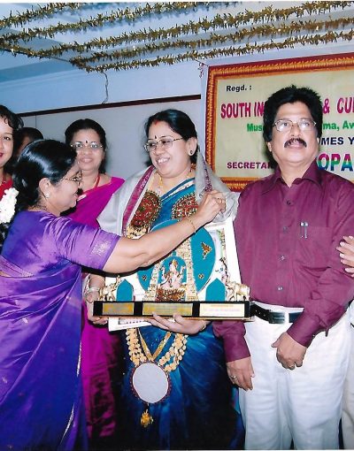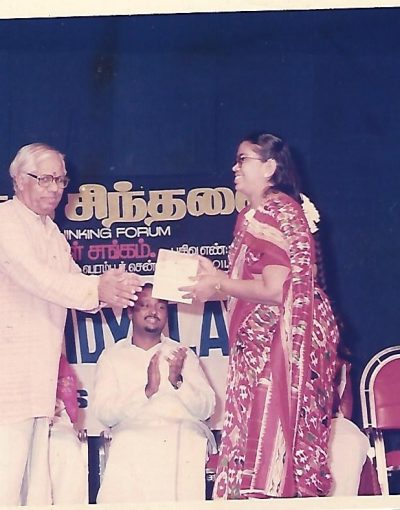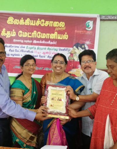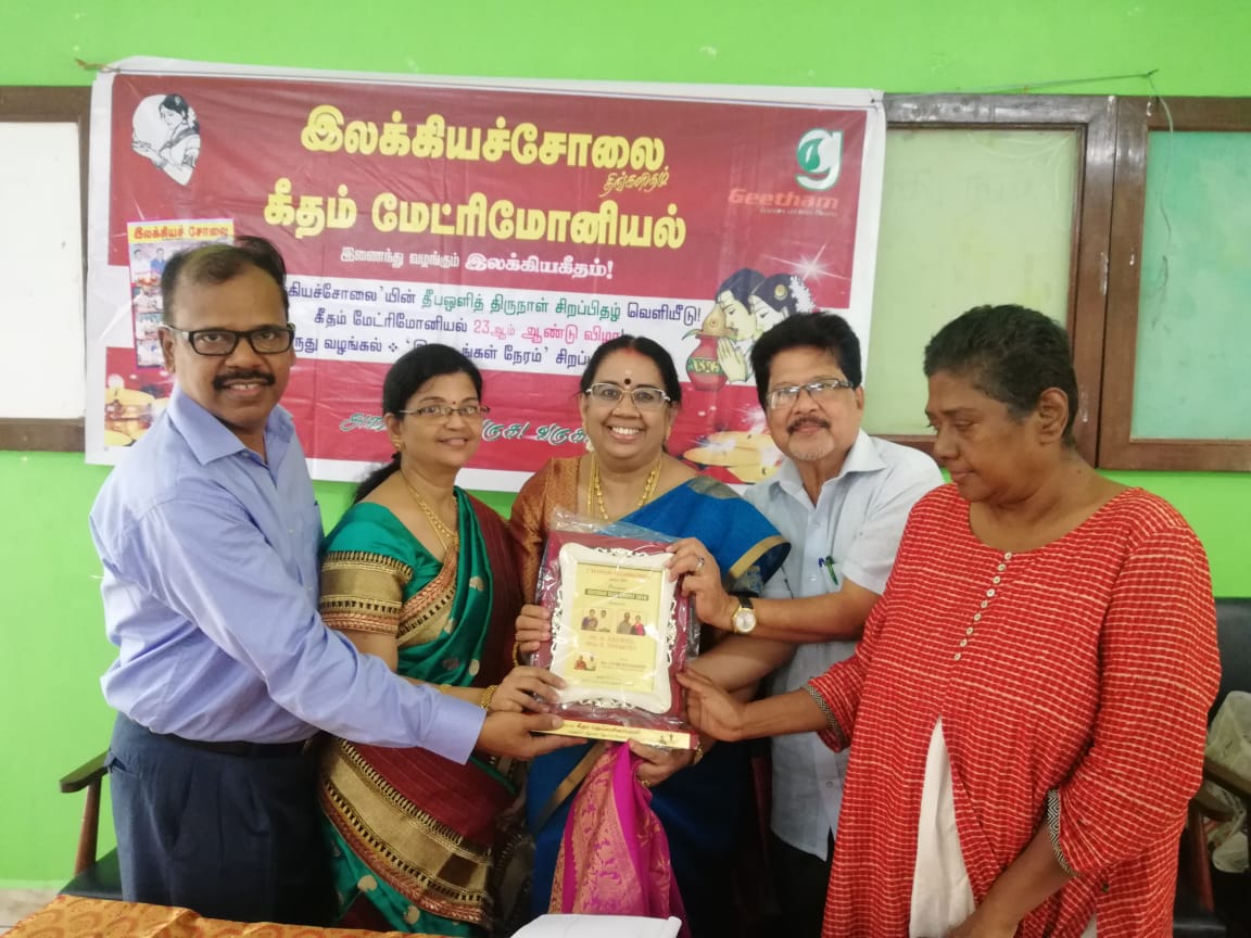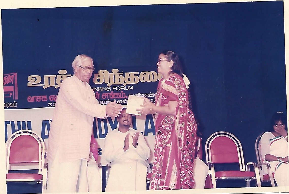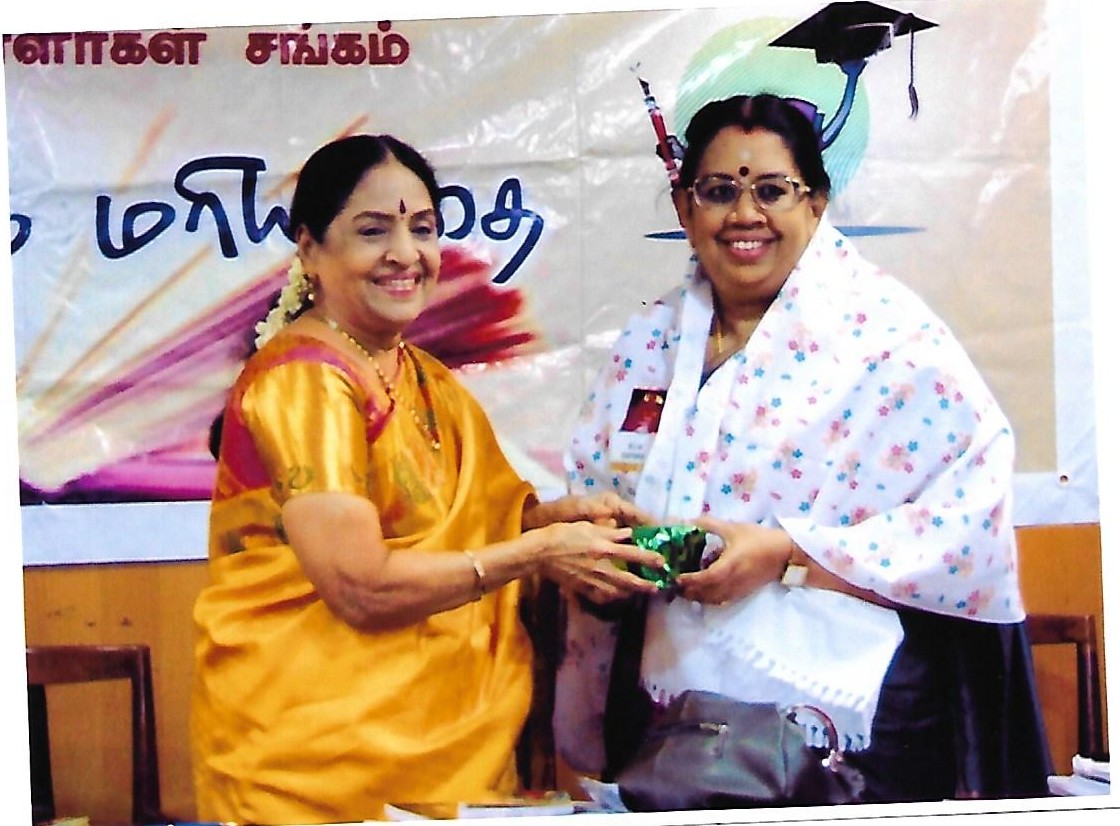 குமுதம் ஆசிரியை திருமதி. லோகநாயகி அவர்கள் கையால் “திருமண திலகம் ” விருது. வழங்கியவர் :இலக்கிய சோலை திரு. சோலை தமிழினியன்.